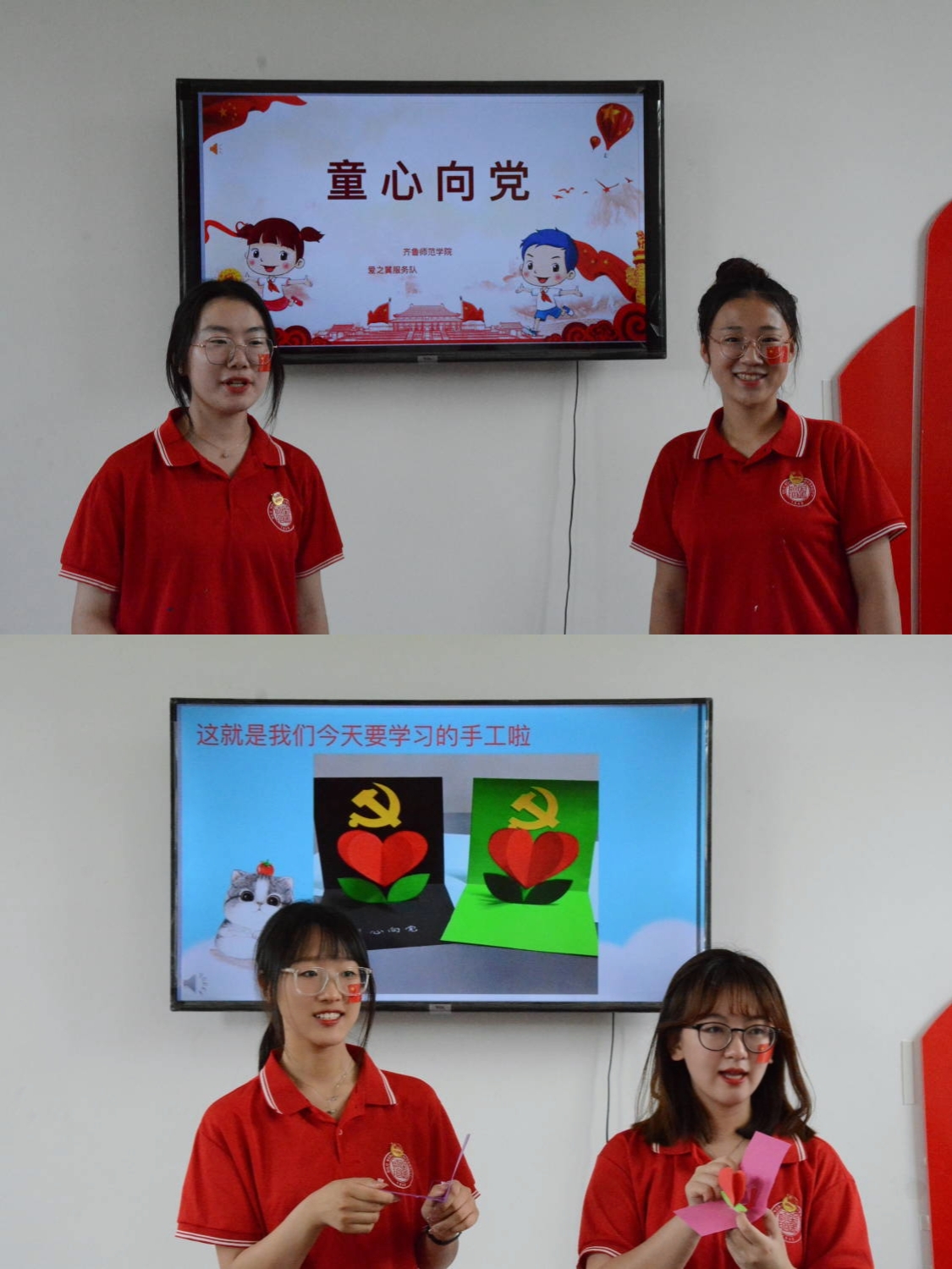 为了迎接党的二十大胜利召开、庆祝中国共青团成立百年,此次“三下乡”活动,坚持党建引领作用,服务队牢记把实现个人理想抱负与全面建设社会主义现代化强国的伟大事业紧密结合起来,进一步坚定永远跟党走的自觉,将党团史宣讲、党的重要思想和先进理论宣传作为活动的主要内容之一。队员们化身党团史宣讲员,深入村庄、村支部、课堂,面向各年龄段群体进行宣传,为二十大的顺利召开贡献自己的一份力量;同时,服务队开展以“童心向党”为主题的爱心支教活动,通过手势舞、主题手工、朗诵等方式为村内儿童进行主题培训,培养儿童的爱党爱国意识。