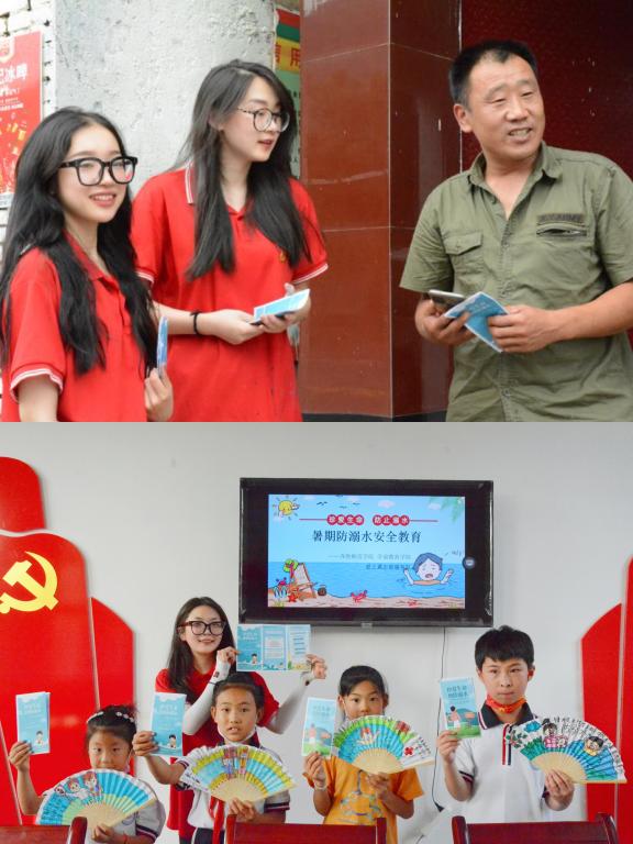 射垛村自然条件优越,主要发展以“精品农业、品牌农业”为主题的综合区域旅游产业。队员们走进农业精品示范园了解运营模式,并深入田地帮助村民采摘瓜果、清除杂草、疏通河道等;同时射垛村水库、河流众多,夏日防溺水知识的宣传普及也是服务队的任务之一。队员们发挥专业特长,根据不同年龄阶段设计防溺水主题小扇子和宣传册,并深入村庄、走进课堂普及防溺水知识,进一步提高村内儿童的安全意识和自我保护能力。