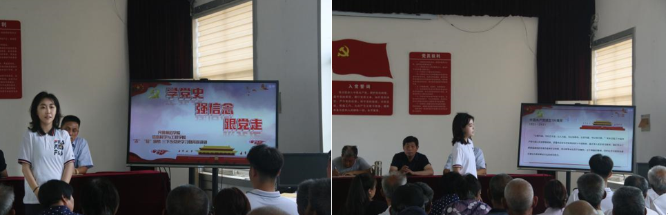 “沂”“信”筑梦三下乡社会实践服务队来到了兴旺社区,参加兴旺庄村党支部七一主题党日活动并进行党史教育宣讲,一起回顾党的光辉历程,讴歌党的伟大成就,共同庆祝党的101岁生日,喜迎党的二十大胜利召开。李鸣笛同学以“学党史,强信念,跟党走”为主题,讲述了建党百年的一系列辉煌成就。服务队队员们在此次活动中充分感受到崇高的理想信念永远是激励共产党人不断前进的力量源泉和精神支柱,作为大学生的我们要不忘初心、砥砺前行,践行初心使命,牢记责任担当,在各项实践中积极发光发热,传承红色基因,传递爱与希望,奉献属于自己的一份青春力量!