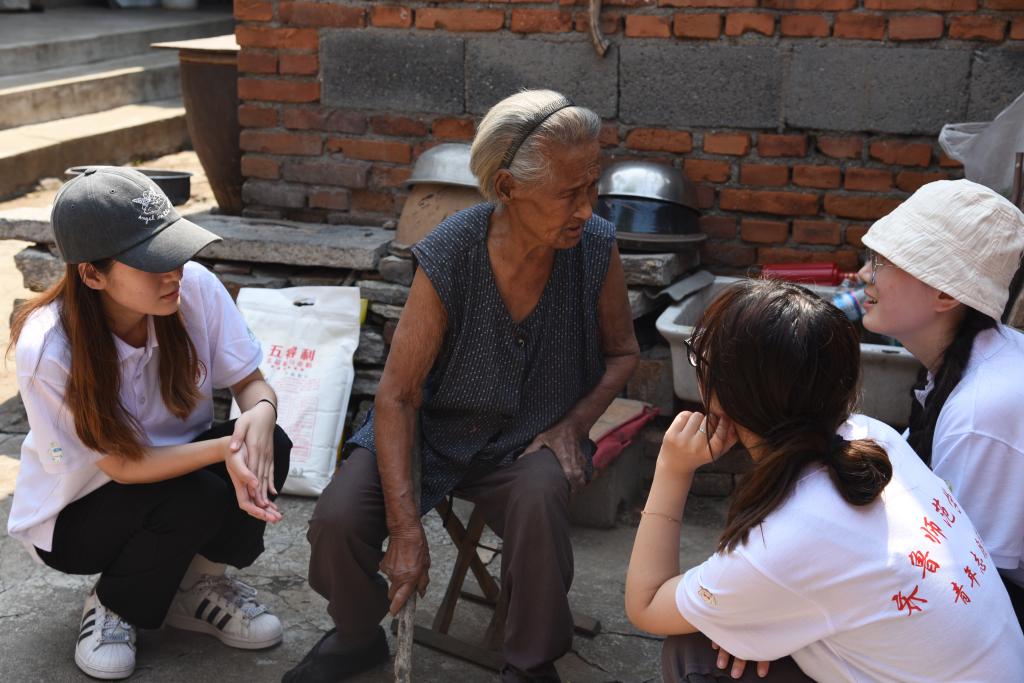 6月20日上午,文学院党委书记秦拓、党委副书记何睿、团委书记刘萍带领志愿者们拜访了村里的高龄老人。交谈中,志愿者们详细了解了两位95岁老人的饮食起居和日常生活情况,对他们的身体情况表达了关心与祝福。随后,志愿者提供了打扫庭院和洗衣服的志愿服务。