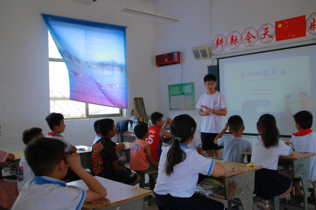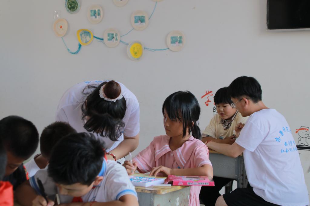 “每个孩子身上都有闪光点,要创造条件,让学生的光闪耀起来。”孙庄小学的谢会玲校长如是说。通过活动的开展,服务队成员们深刻地体会到了乡村学校条件的艰苦——简陋的书桌、色彩暗淡的投影仪、破旧脏乱的白色幕布、为数不多的空调教室。在40℃的高温下,孩子们依然不减学习的热情,一阵阵朗朗的读书声便是孩子们身上最闪耀的光芒。服务队成员们利用现有条件,为学生普及校园安全知识,提高孩子们的安全意识;教授学习绘画、儿歌、手工等,提升学生综合素质。在与孩子们的接触过程中,队员们深刻地体会到每一个孩子对知识的渴望和未来的向往。同时队员们利用课余时间,通过走访村民,发放反诈、防溺水等传单,让村民们了解新型诈骗方式和防溺水等知识,为建设和谐、安全、稳定的乡村环境贡献力量。