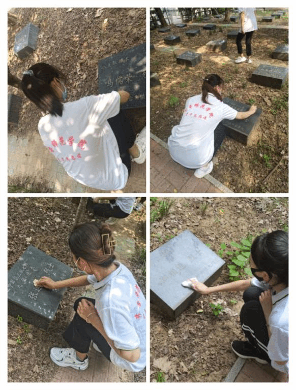 烈士陵园内的墓碑庄严而肃穆,让队员们不由得肃然起敬,怀着悲痛而沉重的心情走近墓碑,擦去灰尘,抬头瞻仰墓碑:革命烈士永垂不朽!