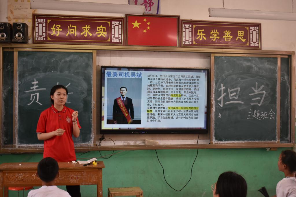 实践队还为同学们开展了关于“理想与热爱”、“责任与担当”的主题班会。课后,李彤同学说:“通过本次理想与热爱班会的讲解,我对自己的理想与热爱有了更加清晰的了解,特别谢谢哥哥姐姐们生动的讲解,大家都很喜欢。”