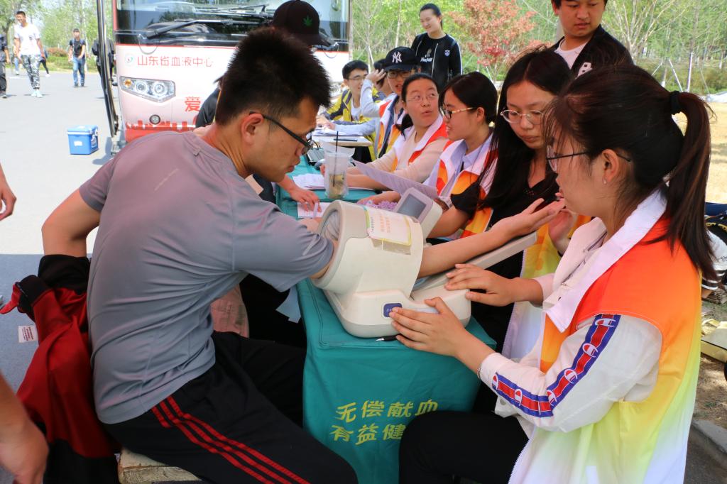 为弘扬“奉献、友爱、互助、进步”的志愿精神,号召广大在校大学生为公益事业做奉献,增强青年学子的社会责任感,金年会官网于4月16日在章丘校区学术报告厅开展了无偿献血知识讲座,并于4月18日至4月20日举办了无偿献血活动。本次无偿献血活动的成功举办,对金年会官网校园公益文化建设起到重要促进作用。