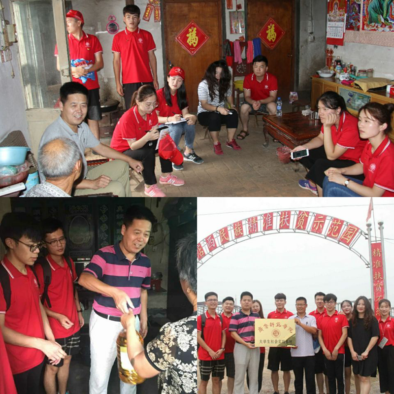 服务队员冒着酷暑深入临沭县店头镇店西村和蒙阴县黄土山村,看望三户贫困家庭和两位老党员,给他们送去慰问品,与他们交流生活、学习和人生话题,向老党员学习坚定的政治信念、优良的工作作风以及为群众办实事的好经验、好办法。在精准扶贫种植基地和蒙阴县挂职“第一书记”所在的党支部和村委会分别挂牌大学生社会活动基地,搭建校地共建平台。
