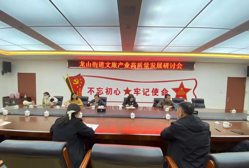 现场调研结束后,调研组与龙山街道办负责文旅产业发展工作的领导和相关人员进行了座谈,就龙山街道旅游发展的文化资源优势、旅游项目建设情况、文旅融合发展定位、发展模式、项目运营方式等方面进行了深入交流。