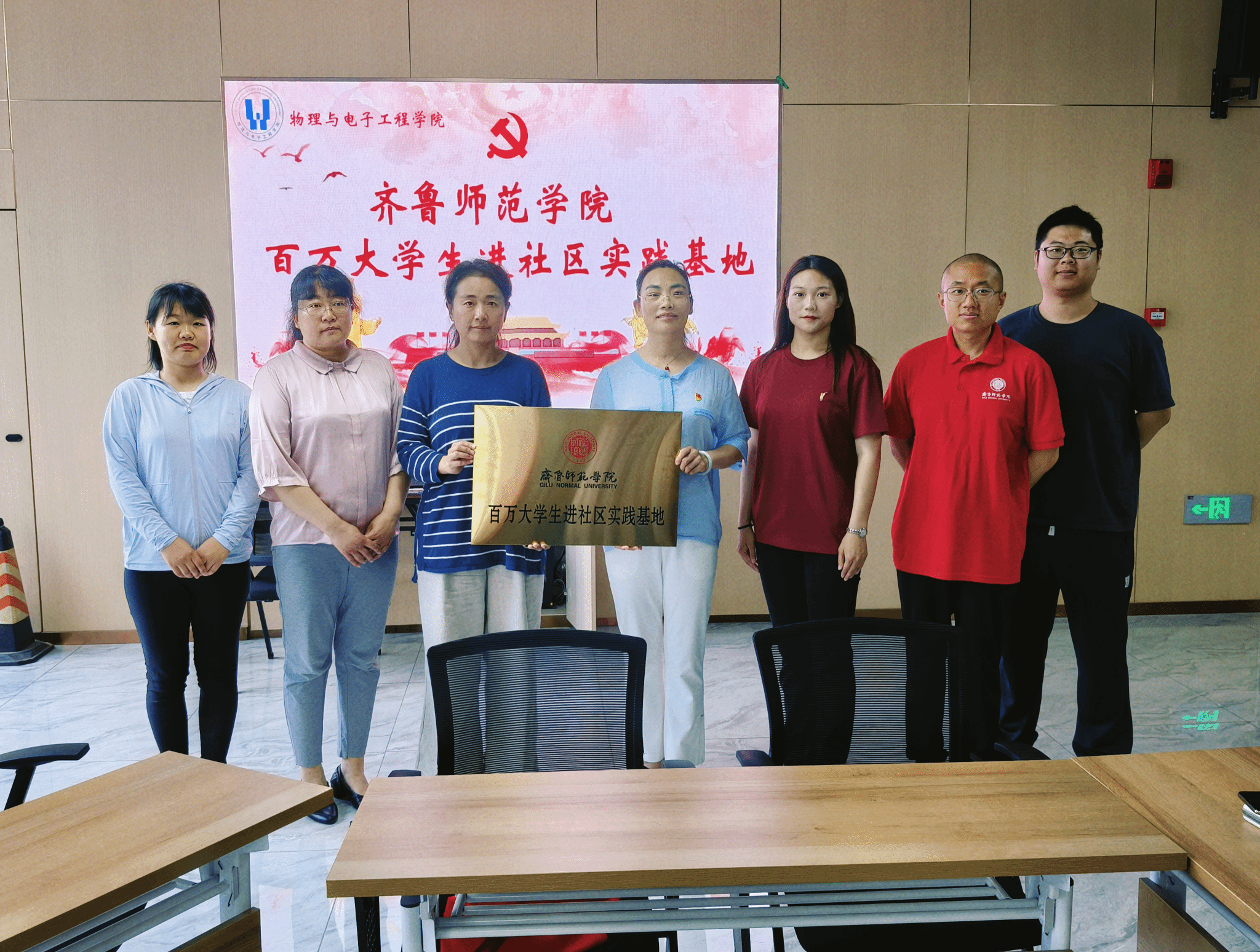 为进一步深化共青团实践育人工作,力促校地资源有效整合,实现高校学子与社区治理“双向赋能”,5月19日,物理与电子工程学院联合章丘区文化路社区举行“百万大学生进社区”大学生社会实践基地揭牌启动仪式。章丘区道通实验学校教学管理部主任毛祥静、文化路社区副主任滕丕霞、物理与电子工程学院团总支书记梅茹、团总支副书记杨沼佩、辅导员吕伟皓和志愿服务队代表参会。