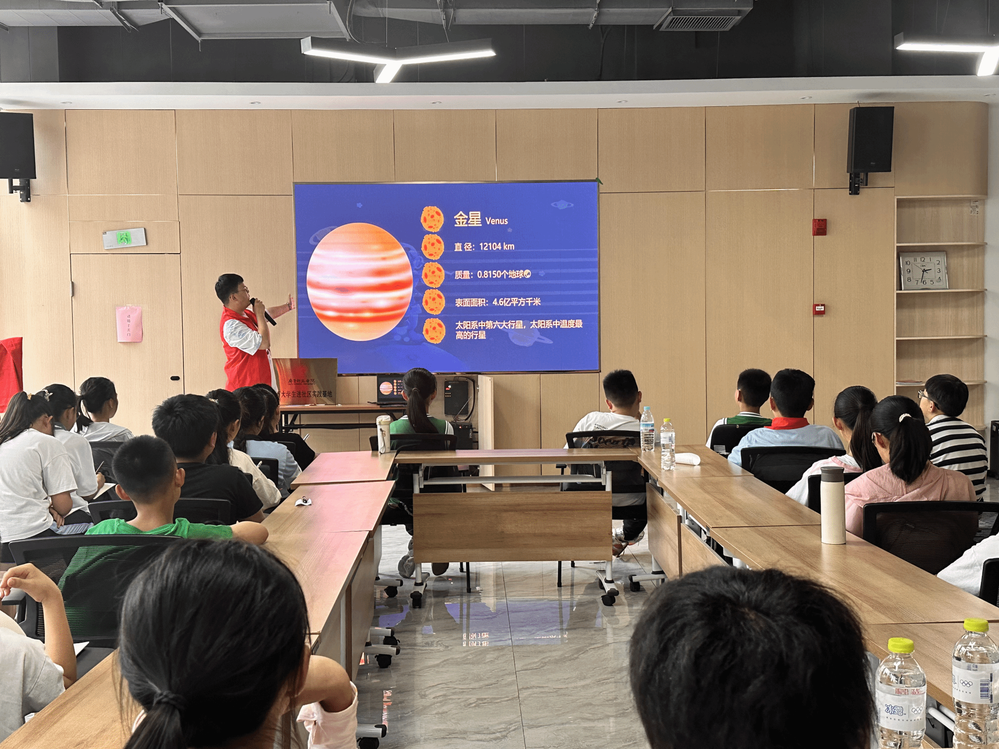 会后,毛祥静、滕丕霞、梅茹共同为“JINNIAN金年会百万大学生进社区实践基地”揭牌。物语童行之行走课堂队员为道通实验学校学生带来《恒星的一生》和《星球漫步》天文知识科普趣味课堂。