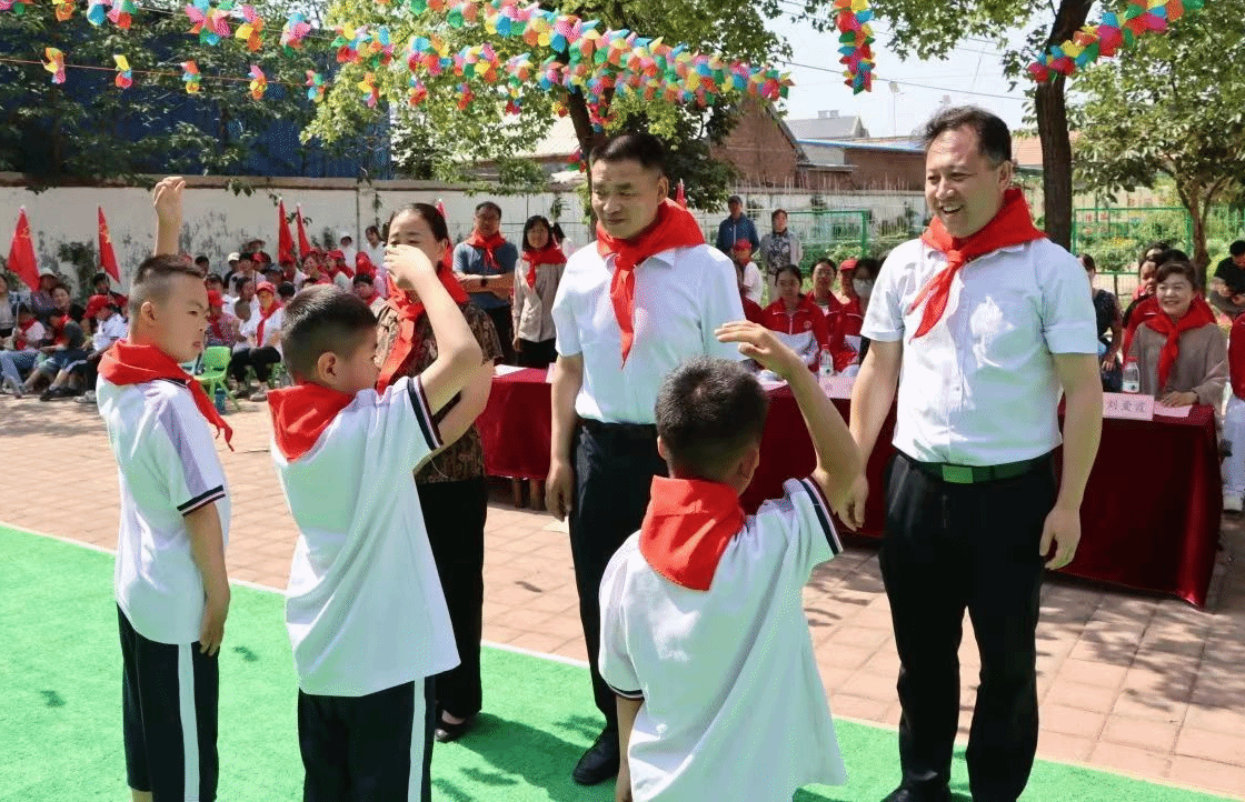 活动现场,少先队队员的入队仪式庄严而神圣。学前教育学院党委书记郑海斌、章丘区特殊教育学校校长孟新春等为新队员佩戴红领巾,寓意着责任与担当的传递,也象征着新队员们将肩负起为集体争光、为社会奉献的重任。