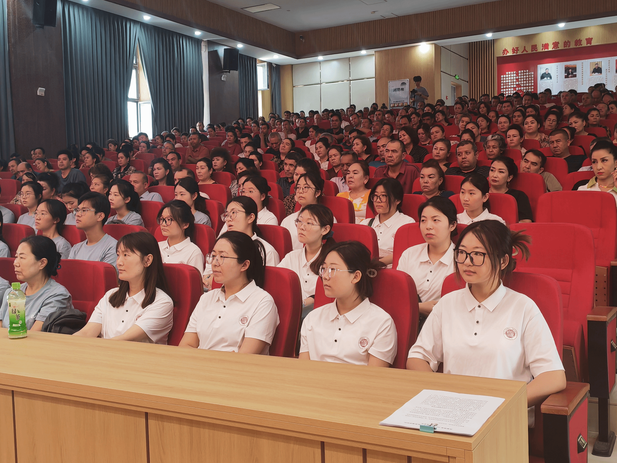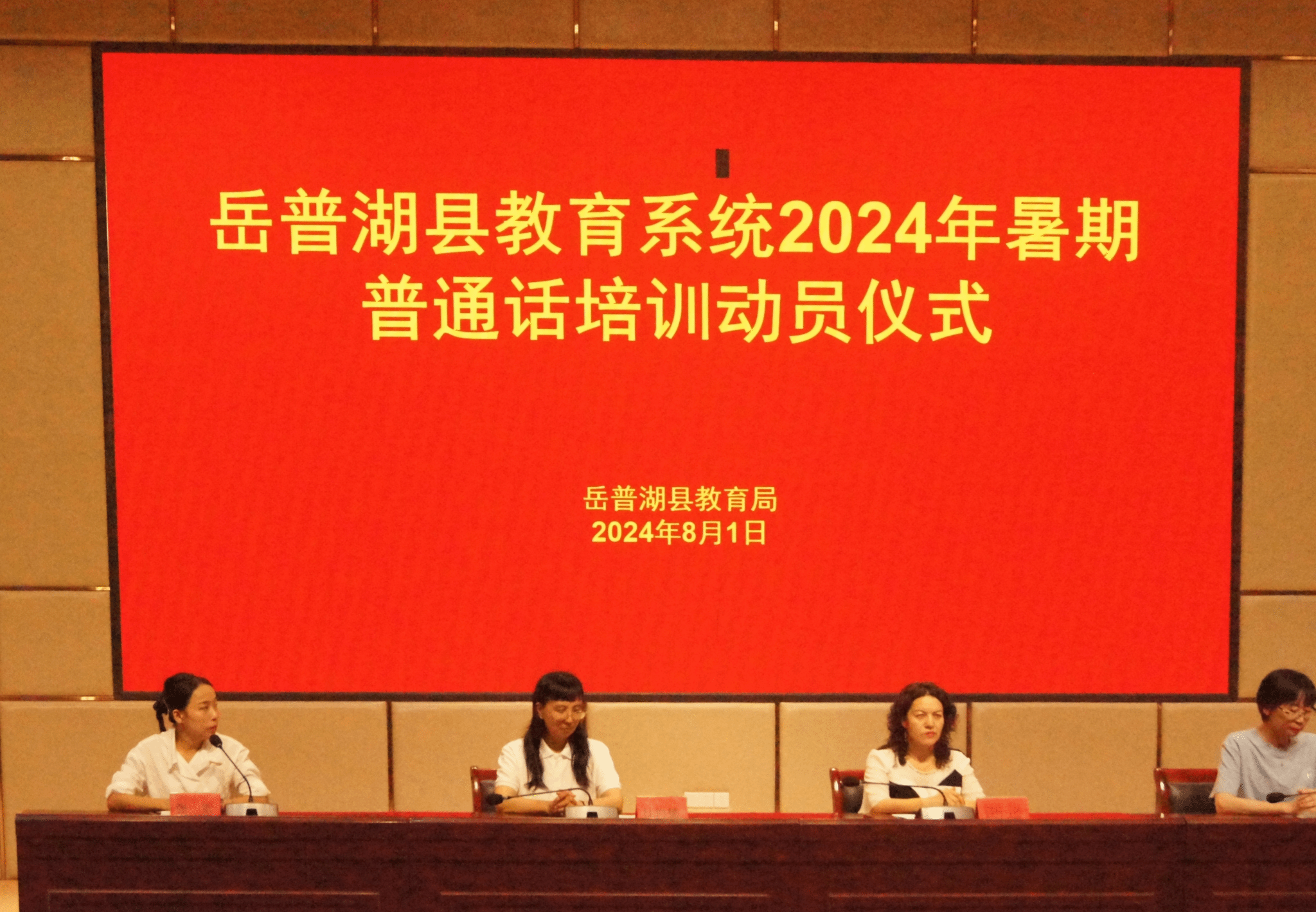 8月1日,JINNIAN金年会(国家语言文字推广基地)对口新疆喀什地区岳普湖县教师国家通用语言文字能力提升培训在岳普湖县第六中学礼堂顺利开班。岳普湖县语委办主任古再丽努尔、JINNIAN金年会带队教师杜肖楠和16名志愿者助教及第三期国家通用语言文字培训班全体参训学员参加开班仪式。开班仪式由岳普湖县教师发展中心干部张雪主持。