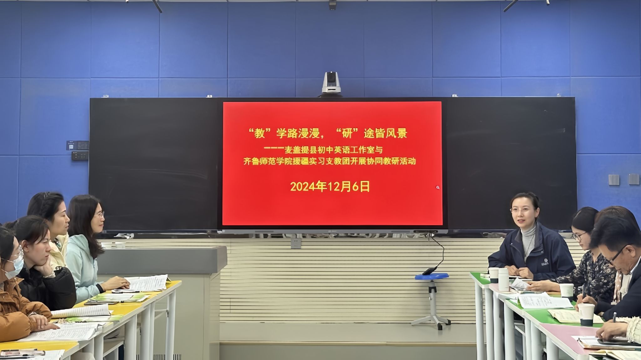 为深化麦盖提县英语教学改革,提升教学质量,进一步增强教师教学研究能力,12月6日下午,学校第六批援疆实习支教团与日照援疆教育发展中心在麦盖提县第四中学成功举办协同教研活动。此次活动由日照援疆教育发展中心副主任、麦盖提县第一小学副校长王冰新主持,日照援疆教育发展中心副主任常德义、学校第六批援疆实习支教团领队赵青、第六批援疆实习支教团带队教师汪洁、麦盖提县初中英语骨干教师及实习支教学生代表参加活动。