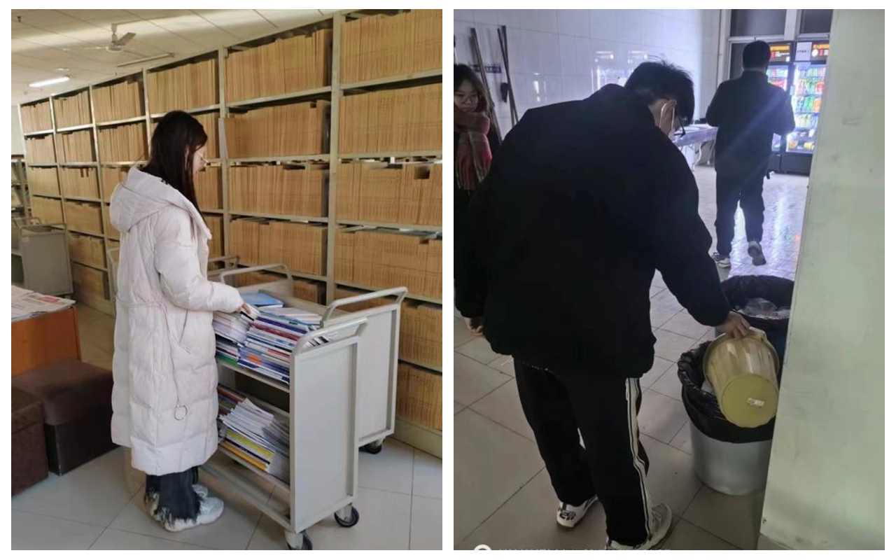 “以前认为借书还书、为人找书、为书找人,是一项简单的工作,实际操作下来发现这项工作细致而繁琐,需要体力脑力结合,既需要有耐心、细致、周到的服务态度,也需要有良好的专业水平,这次劳动实践让我亲身体会到图书馆老师的日常工作并不是我们认为的那么轻松容易。”化学与化工学院2022级化学(师范类)1班的耿绍飞同学在劳动实践感悟里写到。“教学楼清洁工作让我懂得了团队合作的重要性,每个人分工合作,互相帮助,不仅提高了工作效率,还增强了彼此之间的信任和沟通能力。同时,清洁工作让我学会了感恩和尊重,物业的工作人员每天辛苦劳动为我们创造整洁的学习环境,今后会注意保持教学楼、校园等公共区域的卫生整洁,尊重工作人员的辛勤劳动成果。”物理与电子工程学院2022级电信本科2班苏振硕同学如是说。