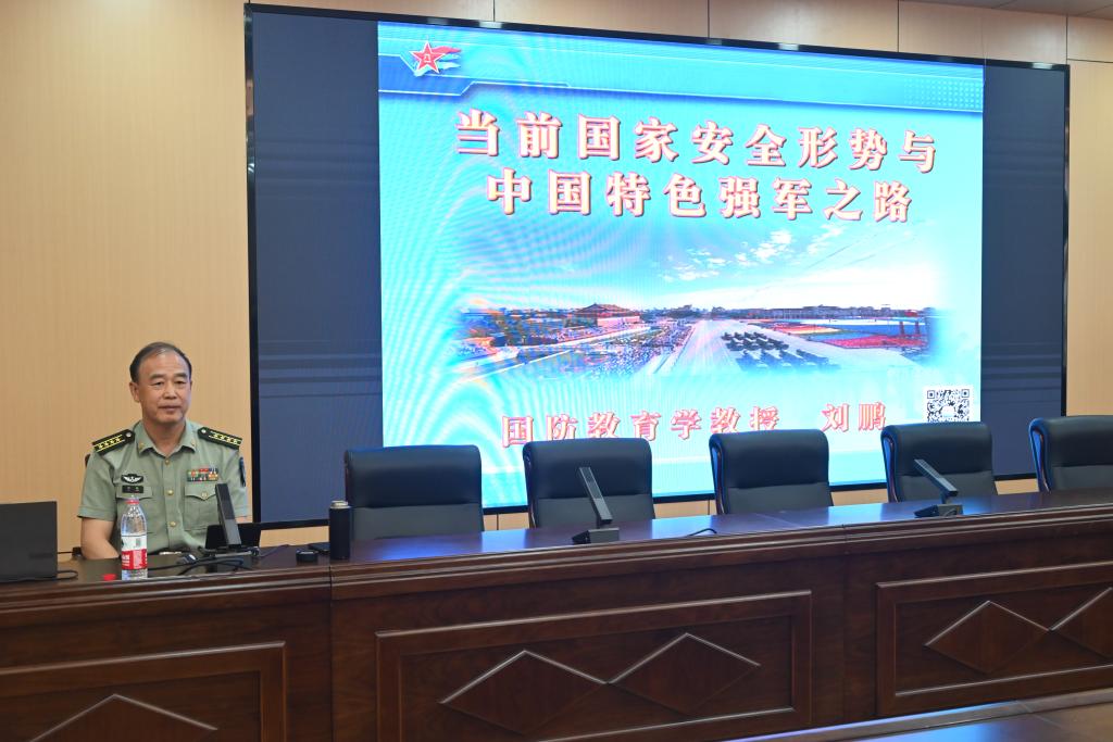 6月30日下午,原济南军区军事教研室主任刘鹏教授受邀到校作主题为“当前国家安全形势与中国特色强军之路”的专题讲座。学校武装部相关工作人员、2023级新生辅导员、军事理论课教师、拟参选2023级学生军训教官以及学生代表参加讲座。讲座由学校武装部副部长张帜主持。