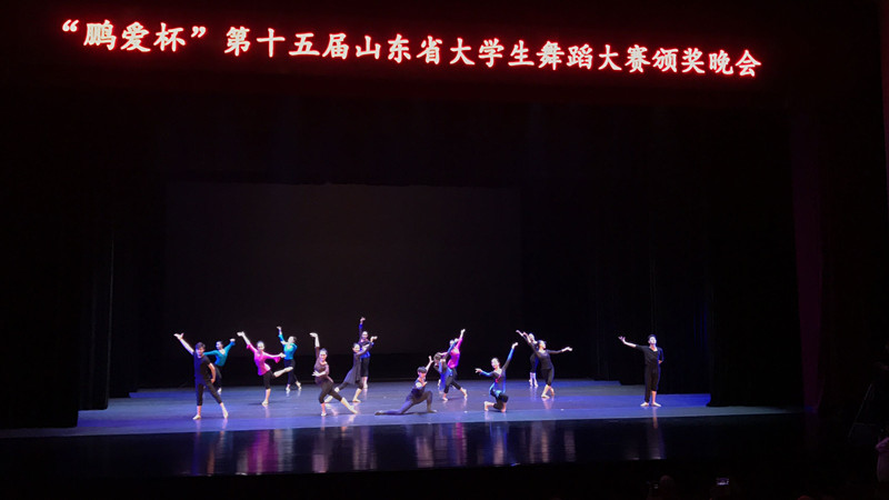 6月7日至6月9日,在烟台举办的山东省第十五届大学生科技文化艺术节舞蹈大赛中,我院参赛作品《绽放》获得专业组单项三等奖,原创舞蹈剧目《我希望》获得专业组群舞三等奖。我院2015级舞蹈学丁研如、邹瑜琨同学代表我院与其他专业院校同学一起排练、参加颁奖典礼的开场舞表演。(音乐学院 张晓蕾)