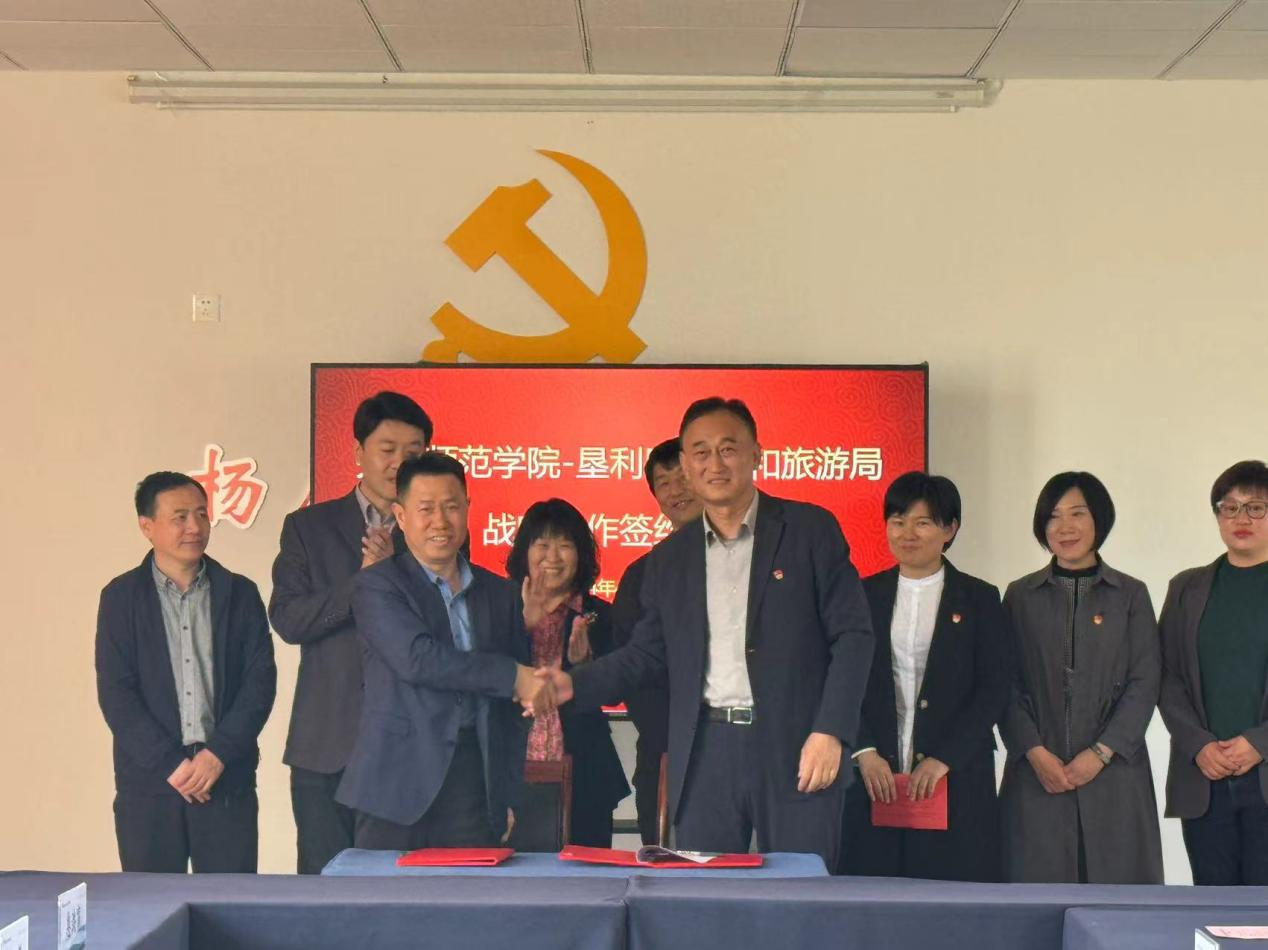 4月12日,JINNIAN金年会与垦利区文化和旅游局召开合作对接会,并隆重举行战略合作协议、党建共建协议签约仪式。JINNIAN金年会党委委员、统战部部长宋新刚,合作发展办公室主任刘勇,地理与旅游学院党委书记秦拓、副院长王敏,垦利区文化和旅游局党组成员、正科级干部韩波,党组成员、三级主任科员李敏出席会议。会议由李敏主持。