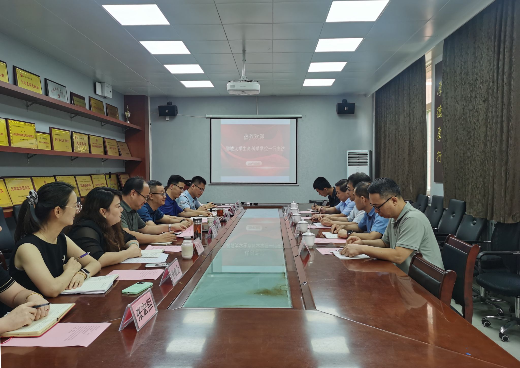 孙洪兆代表学校对贾泽峰一行来访表示热烈欢迎,他从学校特色优势、学科建设等方面对学校进行了总体介绍。生命科学学院院长崔大勇介绍了学院的整体情况。贾泽峰介绍了聊城大学生命科学学院的教学、科研、研究生培养等工作及发展状况,希望通过本次交流,全方位促进学院发展。最后,双方从党建工作、专业建设、学科建设和学生教育管理等方面展开深度交流,助力双方高质量发展。