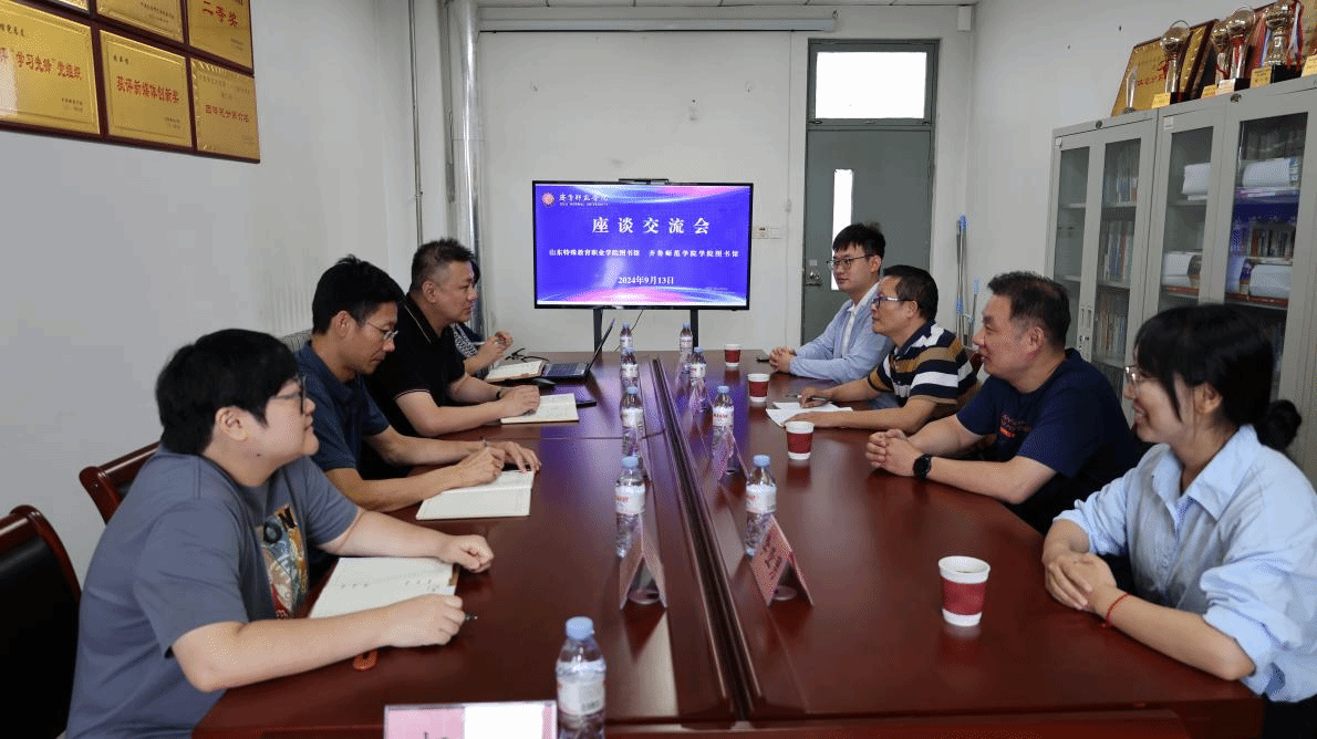 9月13日,山东特殊教育职业学院图书馆馆长刘臣一行4人来学校图书馆考察,并进行座谈交流。座谈会由图书馆馆长王允华主持,副馆长吴立伟、办公室主任张东靖、资源建设部主任陈亚男参加本次座谈会。