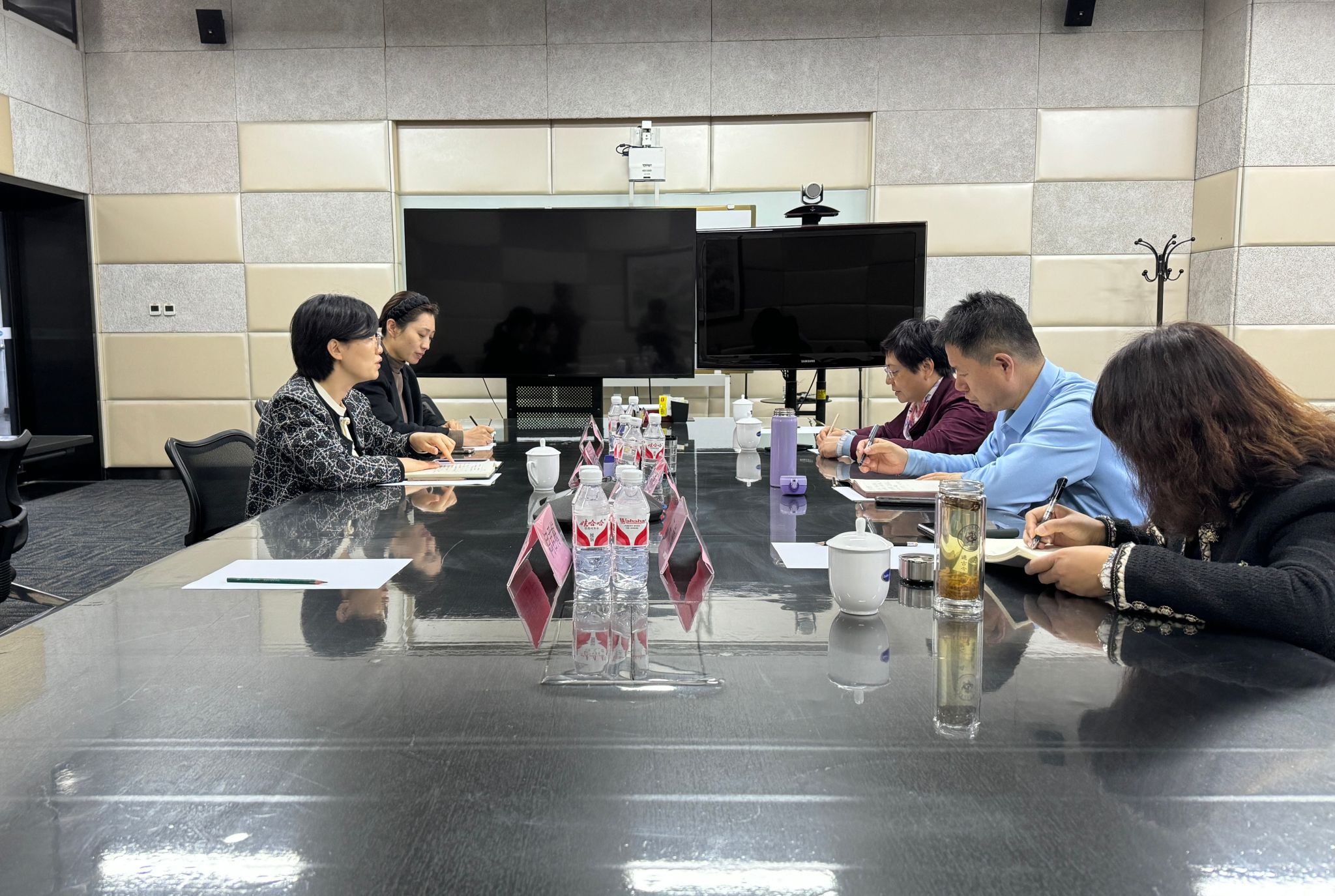 在座谈交流环节,宋秀葵与王敏介绍了学院人才培养、科研团队建设及服务社会开展情况,并分别就教育培训、跨境电商、工业旅游提出了具有针对性的服务思路和模式。这些思路和模式涵盖了多个领域,充分结合了安莉芳公司产业布局和学校在教育培训、农文旅规划设计、电商直播平台建设等方面的专业优势,力求为公司发展助力。