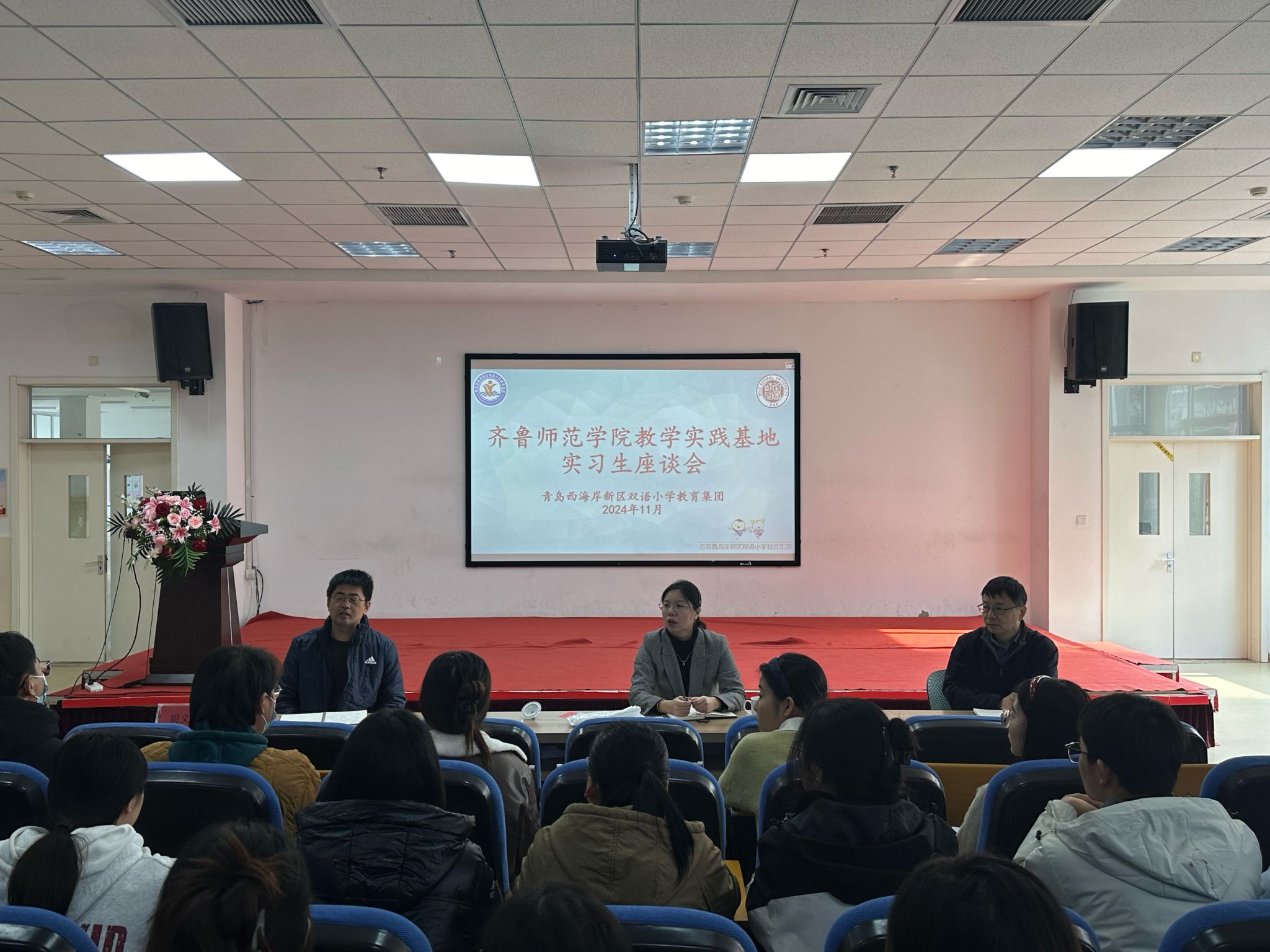 目前,来自文学与历史文化学院、外国语学院的27名学生正在青岛西海岸新区双语小学进行实习。仪式结束后,学校一行与实习生们进行了座谈交流,深入了解他们的工作、生活情况和实习收获,听取他们的意见和建议,为进一步优化教育实习工作和完善教学实践基地建设提供了有益参考。
