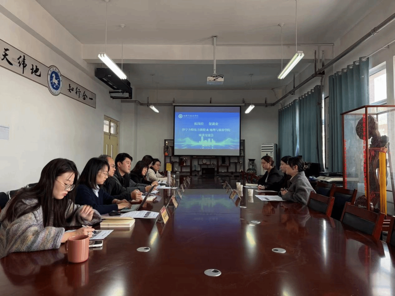 12月19日,方特东方欲晓(济宁)旅游发展有限公司人力资源部总经理徐婷一行到地理与旅游学院交流座谈。学院党委书记秦拓、院长王敏、党委副书记王志勇、旅游管理教研室成员、辅导员等相关人员参加座谈。
