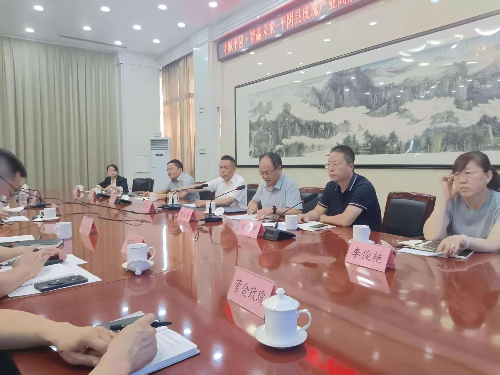 为深化校地企协同创新,推动花卉产业高质量发展,6月20日,由平阴县工业信息化和科技局指导、平阴县人民政府主办的“才赋平阴·智赢未来”—平阴县玫瑰产业高层次人才协同创新暨高价值科技成果发布会在平阴县玫苑宾馆中厅会议室成功举办。平阴县委常委、县委组织部部长王一,平阴县人民政府副县长丁新普,工业信息化和科技局局长韩鲁,组织部副部长苏培伟,人才事业发展中心主任刘灏源、焦庆隆,玫瑰镇镇长付娟等出席会议。生命科学学院院长崔大勇、副院长李超群、教授梁晓辉参加会议。发布会由丁新普、韩鲁主持。