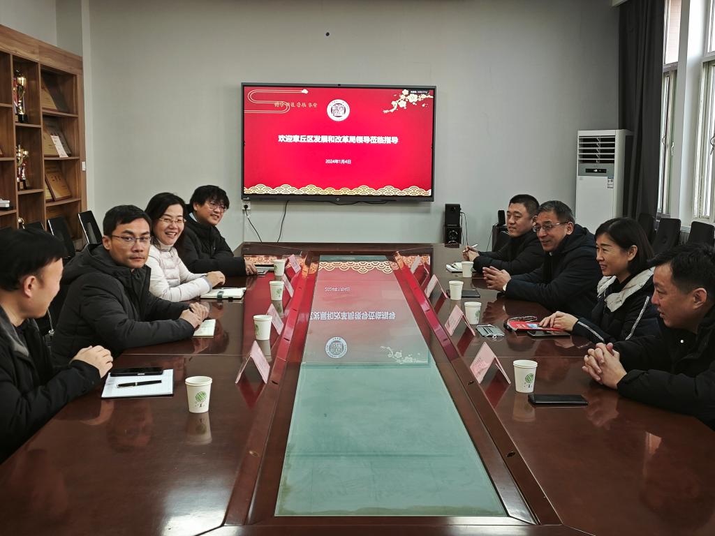 为进一步促进章丘区整体高质量发展,贯彻落实校地双向赋能,创新增强动能,近日,章丘区发展和改革局副局长李虎、隗淑琴等一行4人莅临物理与电子工程学院指导工作并进行洽谈合作。物理与电子工程学院院长张洁,副院长刘萌、任逸等参加会议。