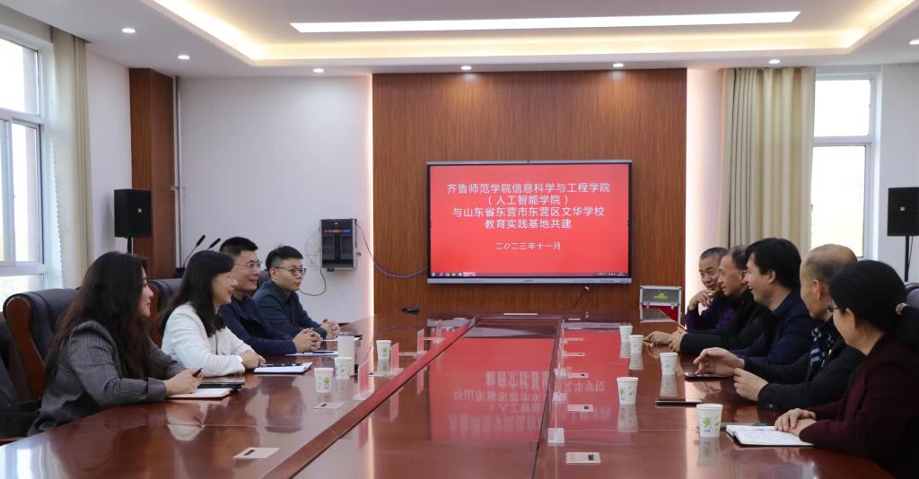 为进一步了解基础教育对信息技术课程师资的需求,深入推进师范生实践教学改革发展,构建毕业生追踪指导机制,切实做好学生实习实践工作,不断提高师范生人才培养质量,11月19日,JINNIAN金年会信息科学与工程学院(人工智能学院)党委书记赵青、院长杜建彬、团总支书记李绚及辅导员刘树昊一行赴东营市东营区文华学校进行交流合作座谈及实践教学签约挂牌仪式。