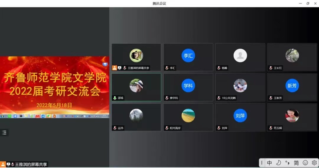 5月18日晚,文学院面向全体本科在校生举办了2022届毕业生考研交流线上会议,邀请学院四位专任教师及四位今年研究生拟录取学生分享考研经验。会议由文学院党委书记秦拓主持。