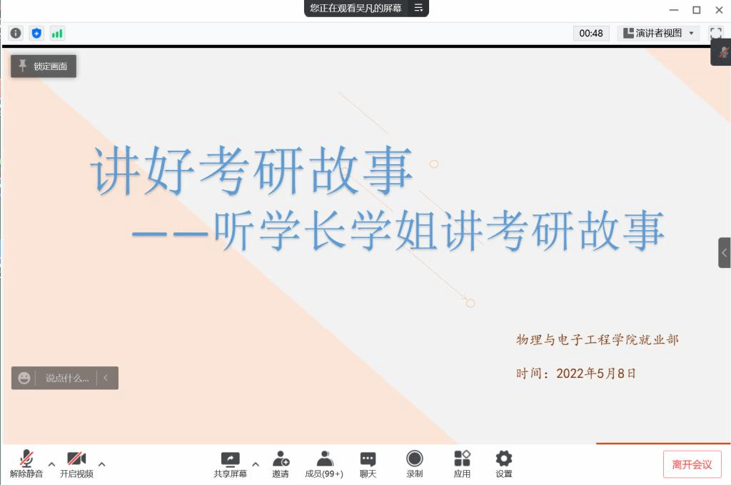 讲好考研故事(系列一)——物理与电子工程学院开展线上考研经验交流会