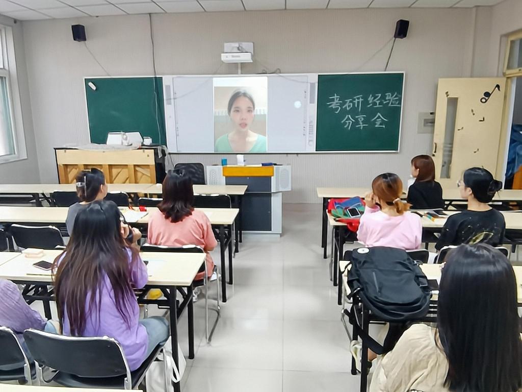 舞蹈专业分享会线上线下结合进行。2021届毕业生、沈阳师范大学研究生李文静通过线上视频详细分享了她在考研前中后期的学习规划以及如何根据个人复习情况制定和适度修改规划,她强调要学会给自己一个准确的定位“很多时候,一个好的选择大于努力”,选择适合自己的考研院校和专业是非常重要的;随后,辅导员尹亚楠就考研的意义展开讲解,她告诉同学们“经验可以学习但不能复制,大家一定要制定适合自己的考研规划并为之努力奋斗”,并结合实例鼓励同学们坚定考研信心,争取能早日到达理想的彼岸。