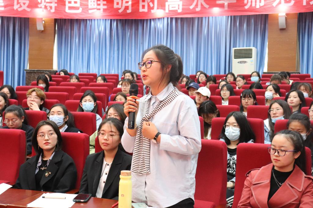 仇丽潮分享了她在新泰市新甫中学经历的酸甜苦辣。她在实习中克服了生活条件的艰苦,顺利地完成了从学生到教师的身份转变,希望同学们能够在校内学习与校外实习期间逐渐增加自己的知识储备、提高自己的教学技能,以积极昂扬的姿态成长进步。