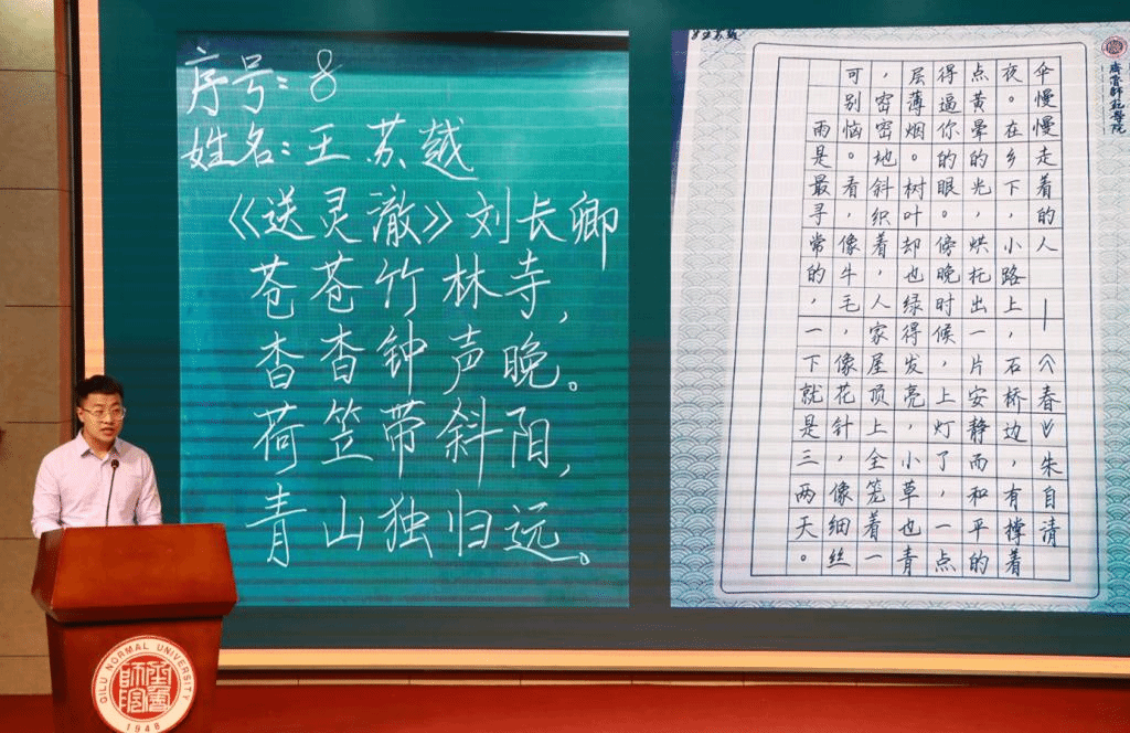 2019级化学专业的王苏越结合自身经历,讲述了自己从准备院级“教师基本功大赛”初赛,至挺进校级复赛、决赛的历程,他着重强调,作为一名大学生、一名师范生,在成为一位合格人民教师的路上,要始终以“四有好老师”为标准,夯实理论知识基础,不断提高从业技能,在实践中进步,在探索中成长。