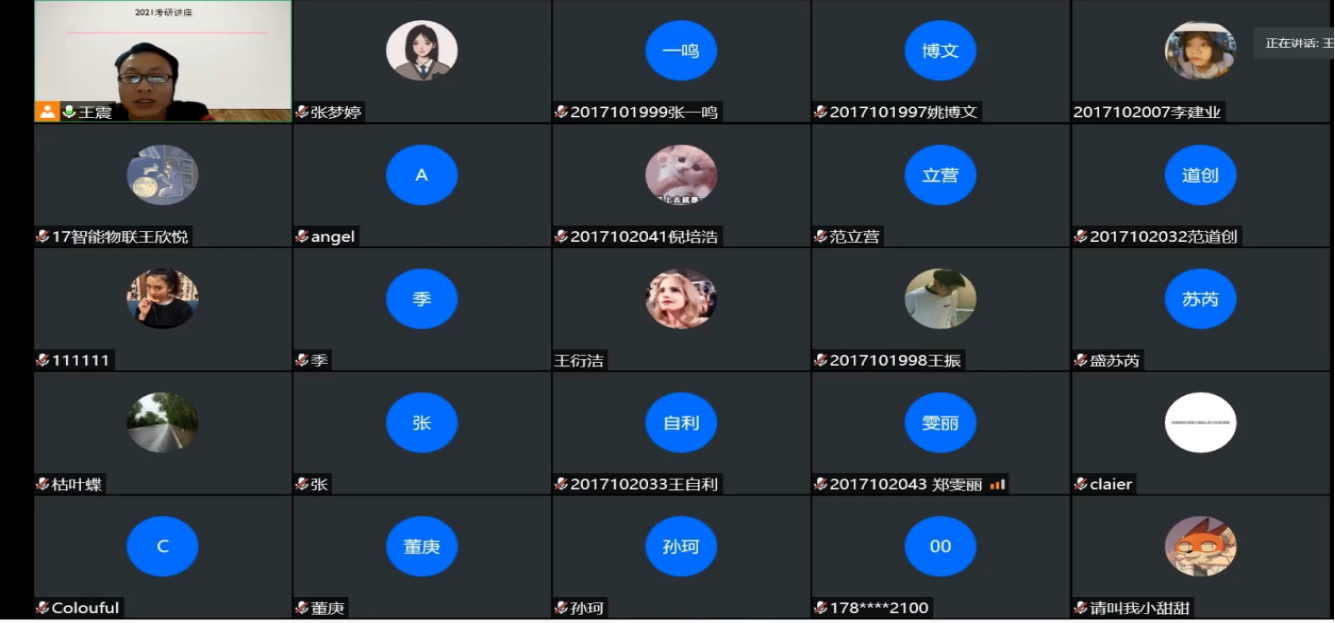 为了进一步加强同学们对研究生入学考试的认识,提高我院学生的考研热情,增强学生考研信心,明确考研目标,掌握相关考研技巧。7月17日,信息科学与工程学院借助于腾讯会议成功举办了2021届考研师生交流会。本次活动邀请了李伟副院长、唐海亮、王震、岳鹏飞老师为考研学生做经验交流指导,辅导员李林如老师主持,2017级全体学生参加。