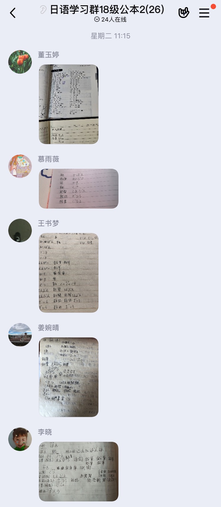 日语教师栾佳将“智慧树”平台与“QQ群课堂”进行了完美的结合,进行了深受学生喜爱的线上直播。此外,栾佳老师还充分利用腾讯软件的“群相册”功能,要求学生将自己的作业拍照发至“群相册”,使本班同学互评互助,共同进步。