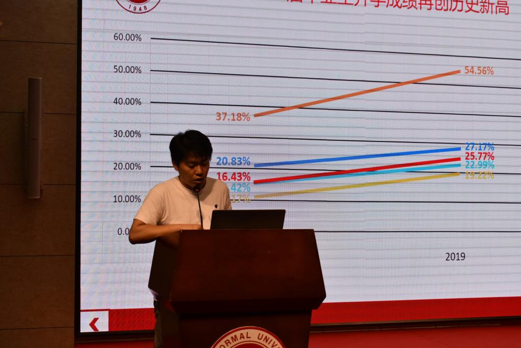 团总支书记牛荦对2019年学校考研各项详细数据做出分析,并公布2020年考研目标及考研帮扶具体措施。