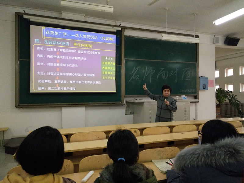 除了理论上的谆谆教导之外,钟红军还现场即兴为同学们执教、展示了她所设计的《英国的制度创新》一课,并以此为例向大家传授了在实际课堂教学实践中,如何进行教学设计、如何推进教学、如何与学生进行互动等亲身的经验体会。钟老师现场启发调动技艺高超,在场的同学们都情不自禁地纷纷参与其中,与之积极互动,氛围活跃,现场不时爆发出一阵又一阵的掌声和笑声。