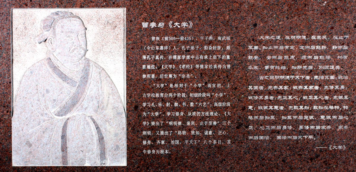 这篇文章介绍一位以修身齐家治国平天下扬名天下的孔门弟子——曾子。曾子名参,字子瑜,是春秋末年鲁国人,中国古代著名思想家。与其父曾点师从孔子,孔子晚期弟子之一,儒家学派创始人之一。曾子在儒学发展史上占有重要地位,被后世尊奉为宗圣。