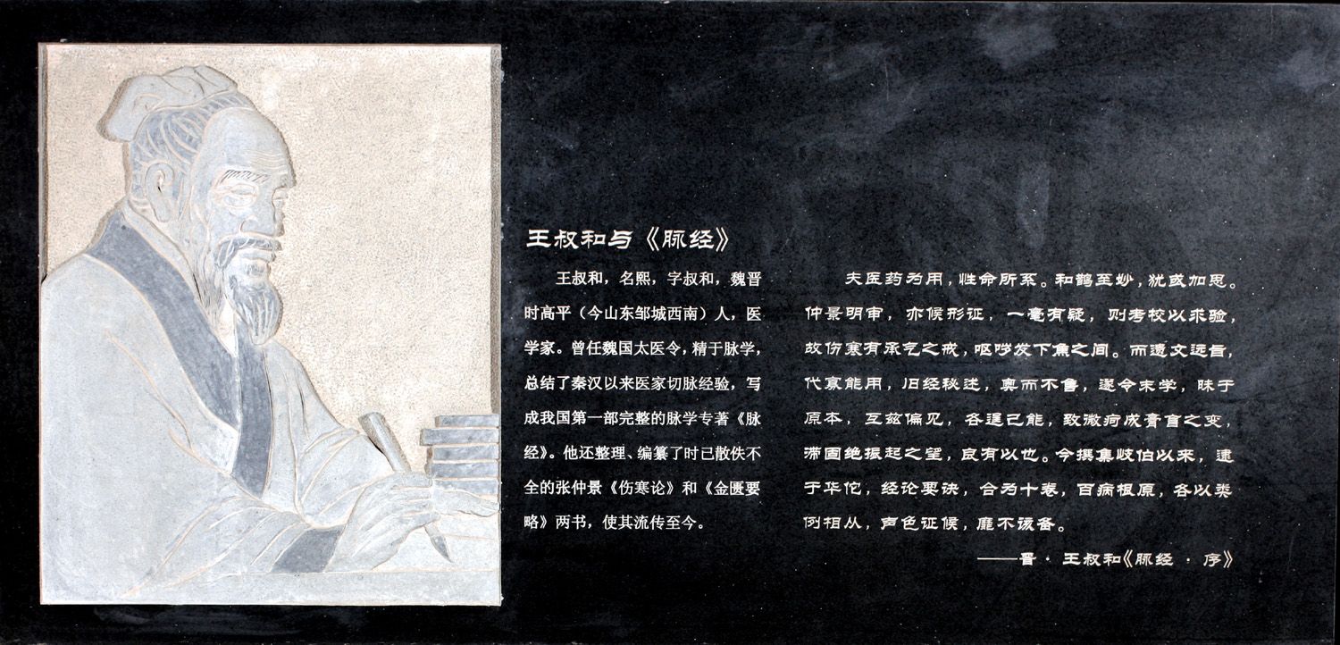 王叔和名熙,字叔和,东汉高平人,高平也就是今天济宁邹城市。他家境清寒,幼年时代是在缺衣少食的贫寒中度过的,严酷的生活现实使他从小就养成了我们山东人的勤奋好学、谦虚沉静的品格。王叔和虽然家境不好,但是自年少时他便醉心于医学研究,阅读了大量医学典籍,尤其是对脉学有一定的研究。在32岁那年被选为魏国太医令。魏国少府中藏有大量历代著名医典和医书,存有许多历代的经验良方。王叔和借此机会,又阅读了大量的药学著作,后经过几十年的精心研究,在吸收扁鹊、华佗、张仲景等前辈的脉诊理论学说的基础上,结合自己长期的临床实践经验,终于写成了我国第一部完整而系统的脉学专著——《脉经》。