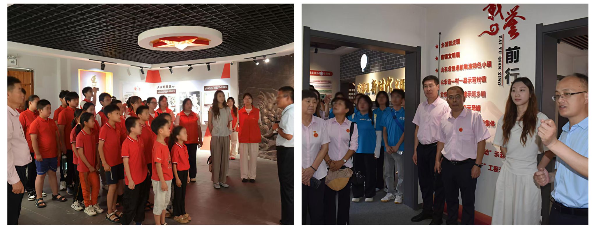 实践队以红色教育为主线,先后走进铁道游击队纪念馆、胜利渠教育基地、白楼湾红色教育基地和台儿庄大战纪念馆,通过实地参观、专题访谈、情景体验等形式,深入学习革命历史,感悟红色精神。7月8日,在铁道游击队纪念馆,一件件文物让队员们深切感受到革命先烈的英勇无畏,在英烈纪念碑前,全员默哀致敬,齐唱《弹起我心爱的土琵琶》,用歌声传承红色基因;7月9日,在胜利渠教育基地,程庄村党支部书记渠志强为队员们上了一堂生动的思政课,深刻阐释了自力更生、艰苦奋斗的胜利渠精神;7月10日,在白楼湾红色教育基地,实践队队员与困境儿童共同聆听运河支队的抗战故事,从“最后一粒粮做军粮”的奉献精神中汲取奋进力量;7月11日,在台儿庄大战纪念馆,泛黄的家书和战地照片让“血战到底”的战役精神深深烙印在队员们心中。在重走红色足迹的过程中,实践队员通过直播、短视频等新媒体手段传播红色故事,为传承红色基因注入青春活力。